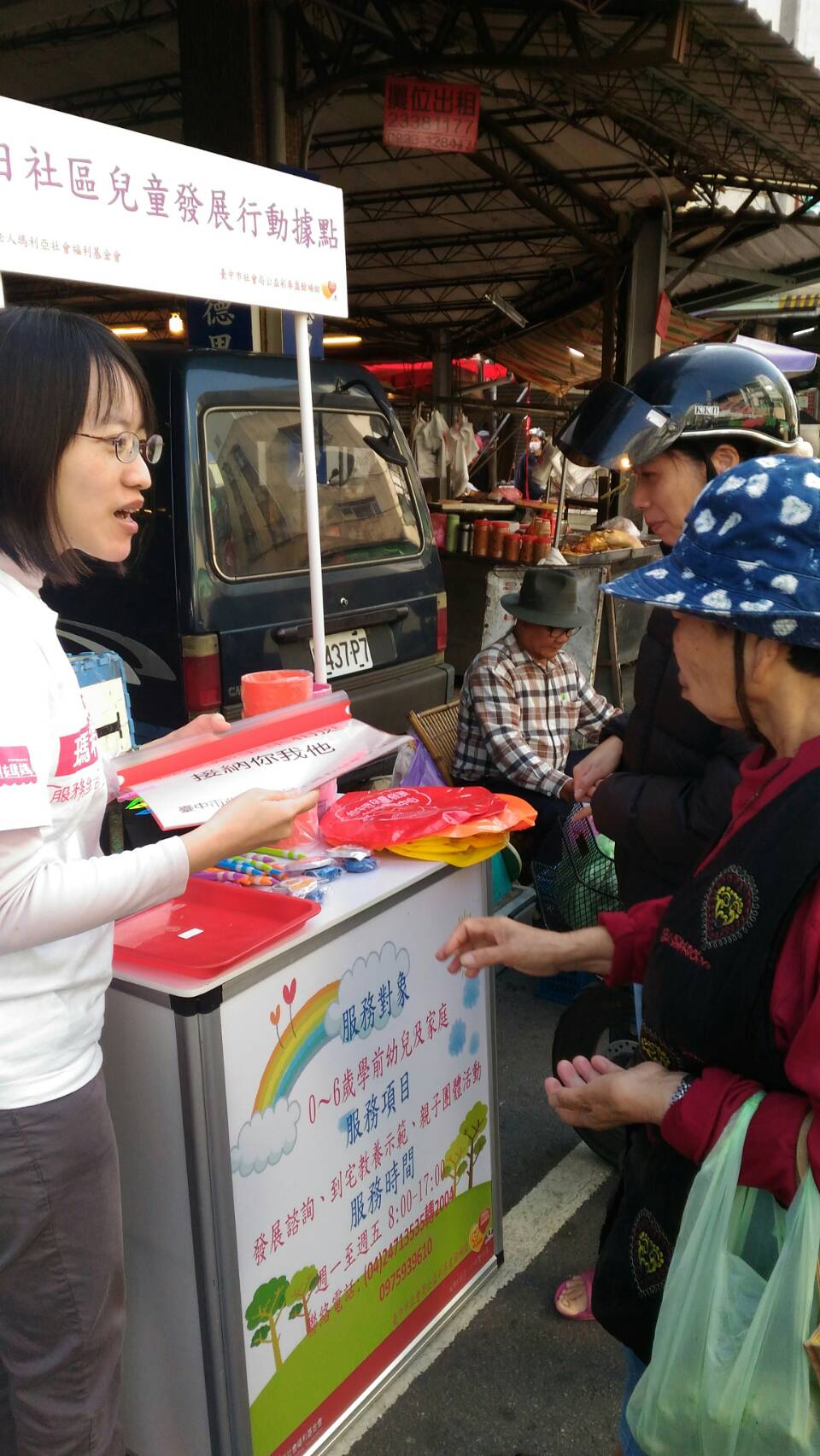【佳綺副組長(左)結合行動據點到烏日的傳統市場宣導】