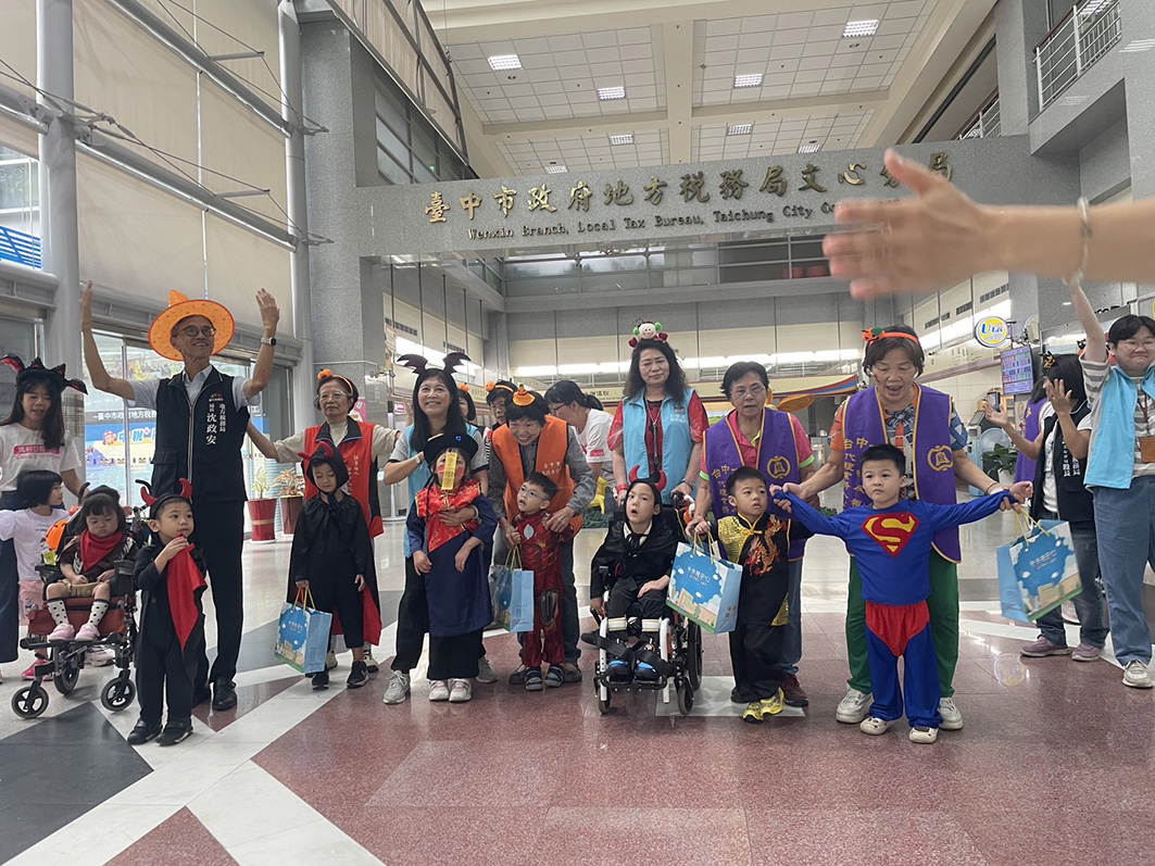 萬聖節不只是孩子們最期待的變裝派對時光,也是增加社交體驗的絕佳機會。為了讓早期療育兒童在節慶中也能體驗快樂與自信,「臺中市政府地方稅務局」於10/28邀請本會早療小天使至局內與民眾.同仁一起過節,讓孩子們在「不給糖就搗蛋」的歡笑聲中,展現學習的成果。