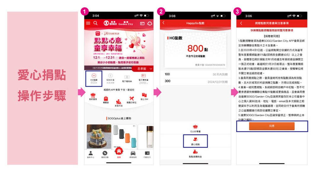 遠東SOGO 持續以行動支持公益,今年再次攜手本會推出「愛心捐點」活動,邀請大家在聖誕佳節一同傳遞溫暖、凝聚你我的愛心,開啟今年最暖心的聖誕序幕。12/1(一)~12/31(三) 期間凡透過SOGO APP 線上捐贈快樂購點數150 點,即可獲得50 元電子折價券2張,活動所得點數將全數捐贈瑪利亞基金會0-3歲瑪利寶寶極早期療育服務計畫。