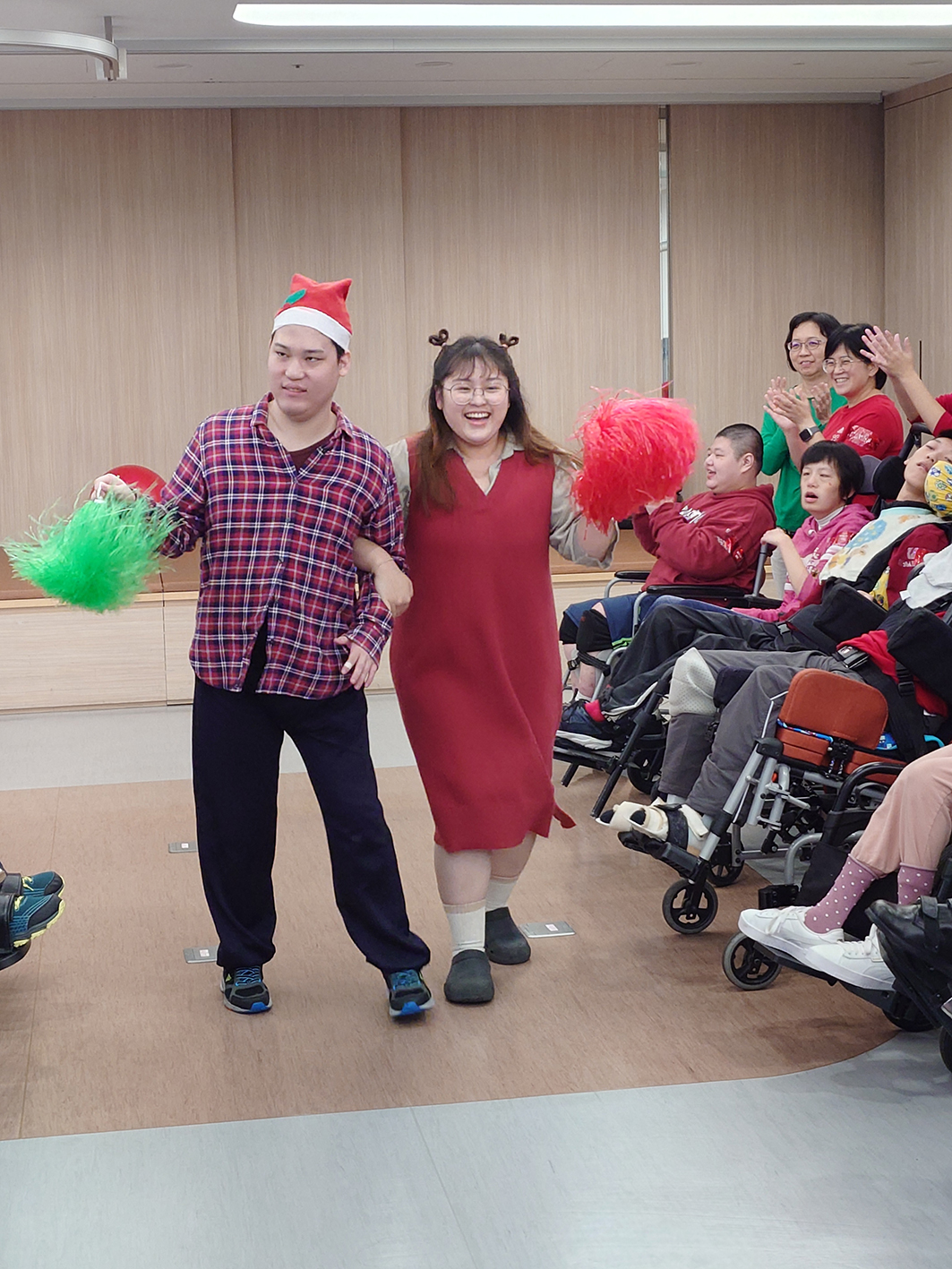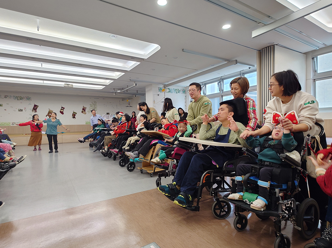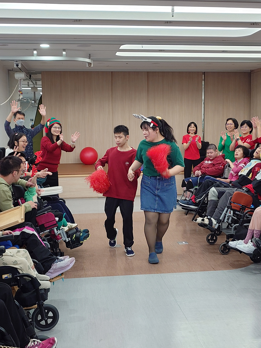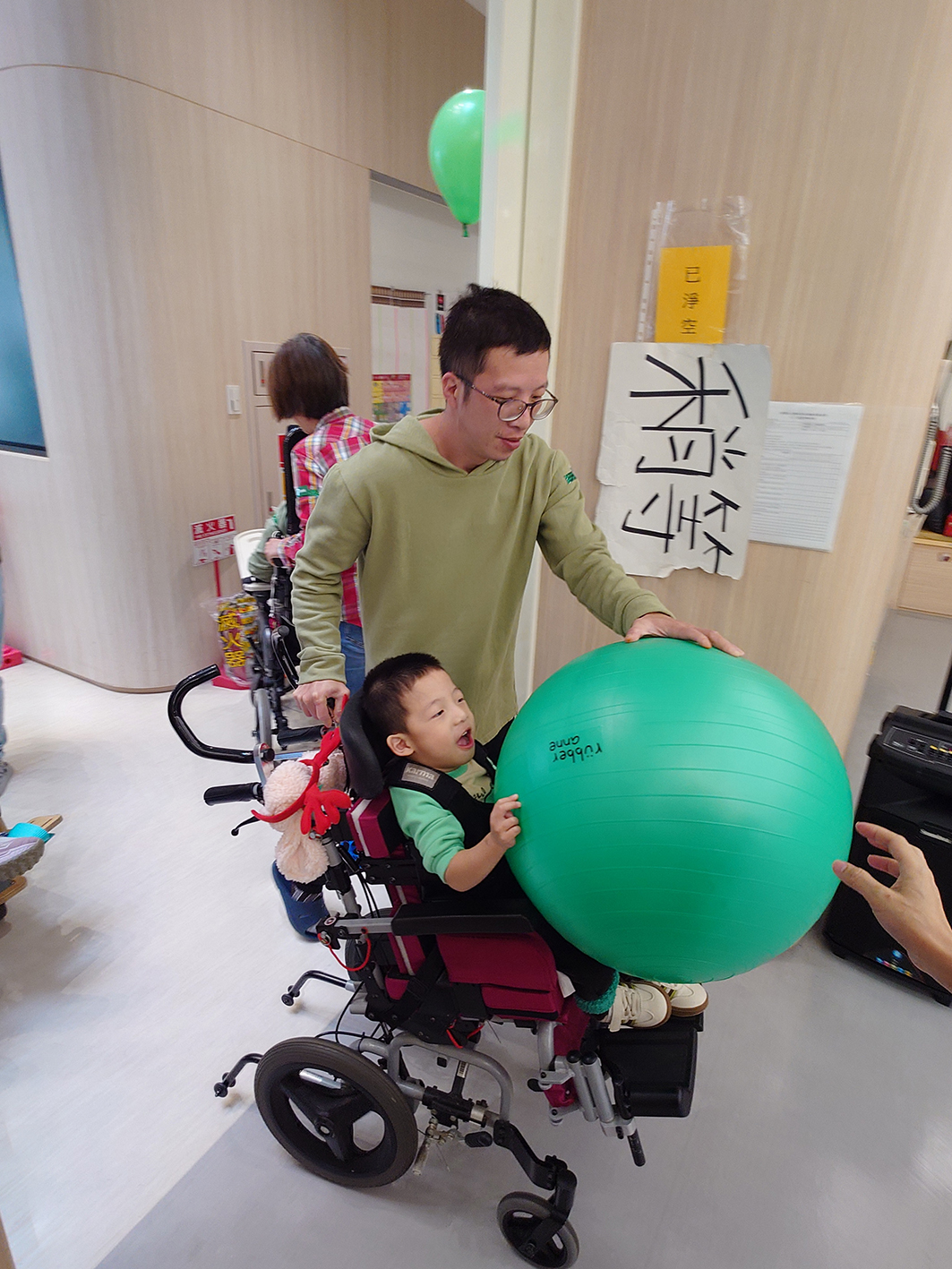 球很大,抱起來並不容易。有服務對象需要被扶著走,有些在輪椅上被穩穩地推著前進,也有人用力把球抱在懷裡,有人則和身邊的支持者一起抓緊它。移動的速度不一樣,方式也不一樣,但方向是一樣的。