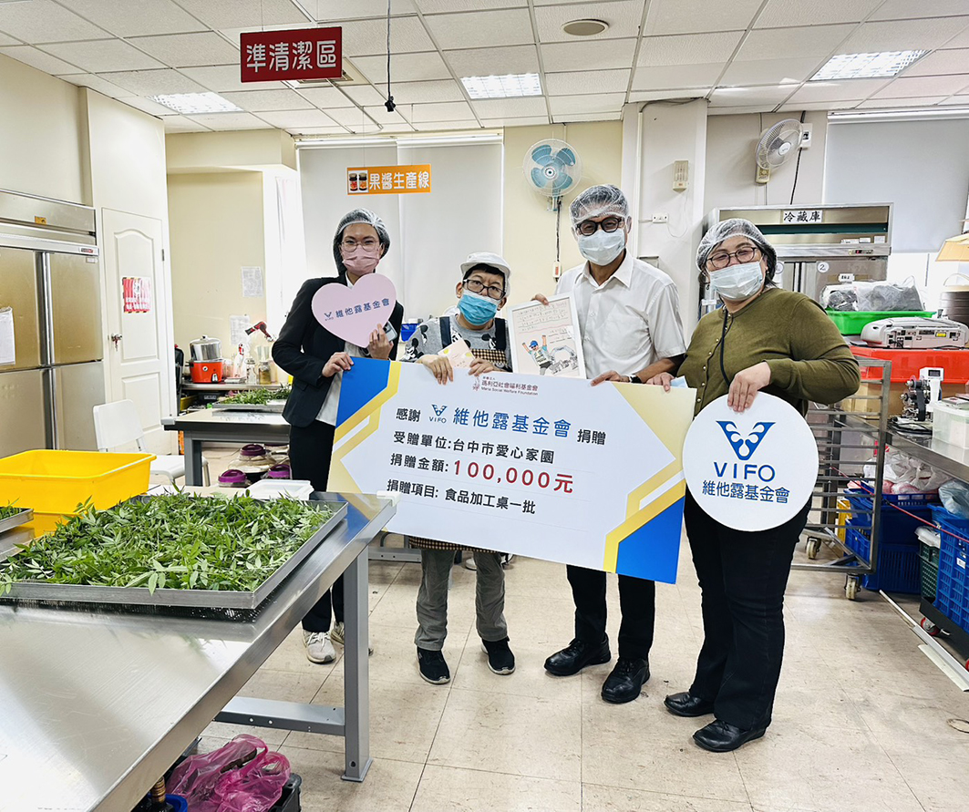 維他露基金會長年熱心公益,年年捐助社福團體挹注善款,即使在疫情嚴峻時期,仍是愛心不斷線的支持本會設施設備的添購,此次詹益榮執行長知悉愛心家園食品加工桌老舊需汰換,即捐助汰換經費,嘉惠瑪利亞青年參與工作更便利,優化工作流程,提升環境安全。
