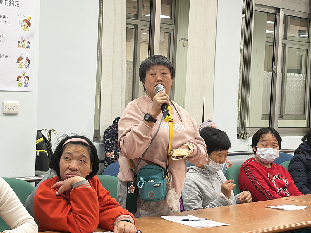 住民一起討論生活事,這不僅是社區生活的一部分,更是落實身心障礙者自我倡議與參與權的重要實踐,讓每一位住民都能在支持中,勇敢說出自己的聲音,參與打造屬於自己的生活。