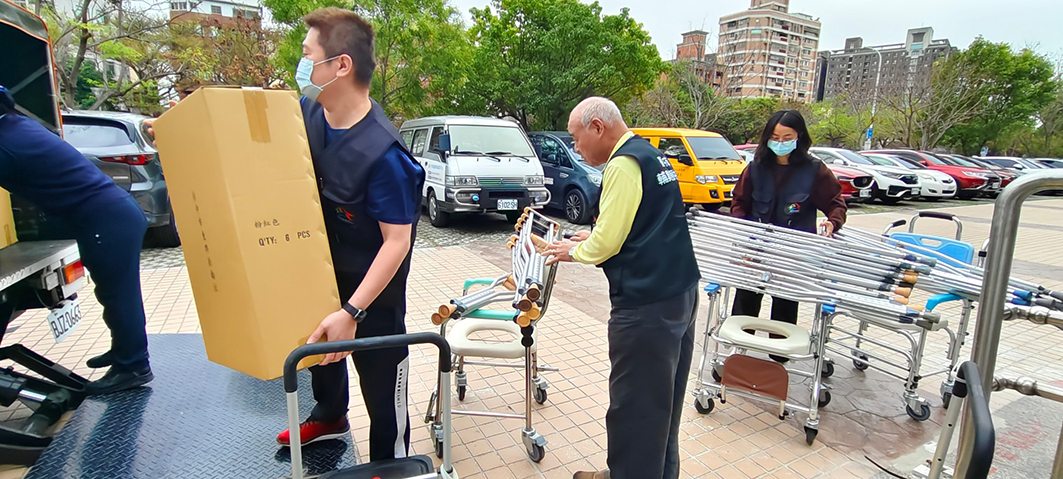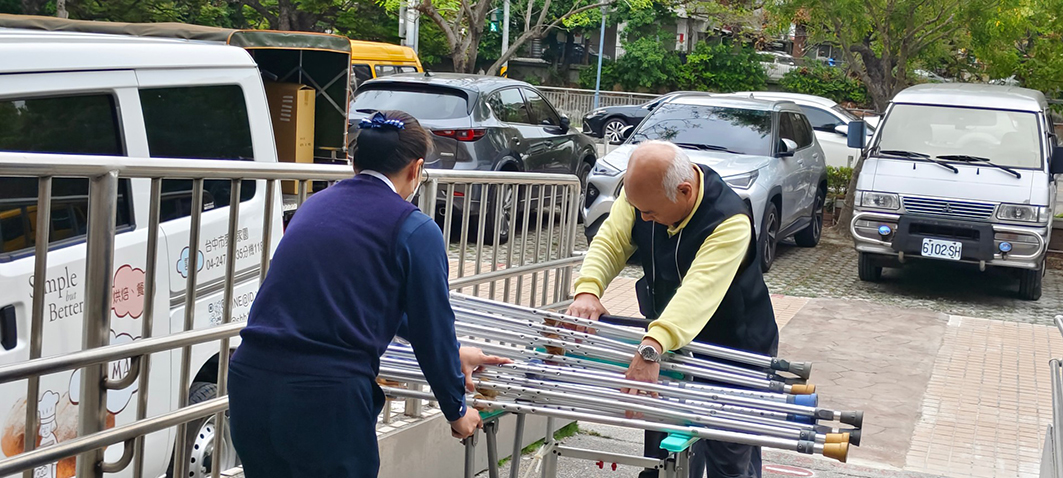 由瑪利亞基金會承辦台中市南區輔具資源中心,日前聯繫慈濟東大園區慈濟環保輔具據點,表示希望提供庫存足夠的輔具,讓資源能幫助更多弱勢家庭。由於東大輔具據點目前亦缺四腳手杖等輔具,台中市南區輔具資源中心除提供電動照顧床外,也提供目前東大輔具據點較缺的輔具,3月10日下午慈濟前往第一階段運載,帶回了四腳拐杖20個、單腳拐杖5個、便盆椅15個、腋下拐杖30個。