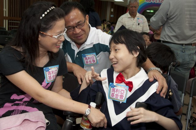 圖說:享有滿滿愛的小庭,常與家人出遊 圖說:全家人一起到場慶賀小庭國小畢業了。 親愛的寶貝: 對別人而言,妳可能是個異類,但在我眼裡,你卻是永遠的寶貝。 當妳兩個月大時,似乎感受不到任何人的存在,不會如弟弟般追視著逗弄妳的人。 六個月大時,妳還不知道「笑」是什麼——雖然妳的笑靨如此難求,但我會等待。 八個月大時,弟弟已經爬著到處去摸索這個新奇世界,妳依然活在自己的世界裡,依舊停留在我安置妳的床上——沒關係,寶貝!我會繼續等待,等待妳會爬,會走,會飛。 週歲了,哭和笑依舊不曾出現在妳臉上,妳還是保持著一號表情,用獨特的方式,冷眼旁觀著這世界。 兩歲了,雖然還是要用空針一口一口地餵妳喝牛奶,但是,當因做復健而痛苦時,妳懂得用小貓一般的哭聲表達抗議時,我卻幸福地笑了。 三歲,終於吃進了妳人生中的第一口稀飯,也學會如何翻身——這樣的進步令我雀躍,隨著妳的進步,我也漸漸習慣了等待。 四歲,妳笑了,我卻感動得哭了。進了學校,讓我意識到,妳的情況雖然不是最好的,但也讓我感謝上天的厚愛。雖然兩歲前,進出醫院的次數,至今想來仍讓人手腳發軟。但那為了照顧插管、睡在氧氣帳的妳,連續十天「足不出院」的日子終究過去了。 五歲了,每每看到妳大哭的樣子,我總在一旁笑得好開心,因為我的寶貝會哭也會笑了。 六歲,妳總算認得我就是最愛妳的媽媽,妳知道「碗」代表食物,知道如何表達對食物的好惡,知道媽媽搔妳癢時,要以笑來表達心情,知道「車車」代表的是出門——然而妳卻不知道,在學會了這些別人視之為芝麻小事的同時,我是如此快樂而驕傲。 現在的妳,懂得用聲音與我們分享妳的喜怒,生氣的時候—妳哭;高興的時候—妳笑;想吃東西的時候—妳會發出「啊啊」的聲音;對於討厭的食物—妳會毫不客氣的用舌頭頂出來;復健的時候—妳會耍賴;出門坐上爸爸的車時—妳會興奮的手舞足蹈;吃飯的時候—妳偶爾會自己用手把飯菜送進嘴裡;如廁訓練的成功率愈來愈高、聽到老師叫妳會回頭、站立時妳的小腳愈來愈有力了……這些種種的進步,都是師長們對妳心血的付出,看著妳喜歡上學的樣子,就知道妳是多麼的喜歡老師了。 曾經,有人如此安慰我:因為上天知道妳是最有愛心的,所以把她送給了妳,因為妳有足夠的能力照顧她。也有人說:因為上輩子欠了她,這輩子要來償還。我說:不論因為什麼原因妳來到我們家,妳就是我的寶貝。雖然妳和弟弟是同一天來到這個世界,此後的路卻始終不同,像是兩條相交的直線。但是在妳人生的第一個畢業典禮前,媽媽要告訴妳,妳擁有的一切,絕對是最多的。妳擁有家人對妳滿滿的愛,也擁有老師對妳期待的愛。 眼看著妳即將畢業,即將邁入人生中另一個階段,心中只有滿滿的感謝,感謝寶貝妳對於學習的努力;感謝治療師們對妳的諸多協助;更感謝學園師長們對妳無私的付出;面對新的階段的開始;媽媽期許妳能以健康的身體來享受這個世界,以妳一貫的樂觀來體會這個世界,以溫暖快樂的笑容分享給大家。 我家的寶貝長大了,我家的寶貝要畢業了。 祝妳畢業快樂 最愛妳的媽媽2011.06 (小庭媽媽,啟智學園) |