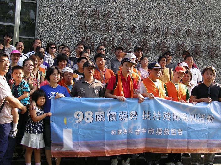 全體師生及就難協會出發前在霧峰家園門口大合照 / 大家互相合作、努力不懈,誓言登頂 霧峰教養家園 吳東展 有多久沒眺望群山萬嶺;有多久沒聽見大自然的呼吸聲;又有多久沒置身於雲海間,閉上雙眼讓時光倒轉… 7月19日我們擁有始無前例、精彩美好的旅行,這都要感謝台中縣救難協會協助瑪利亞霧峰家園所舉辦的「征服百岳、開闊視野」合歡山之旅,讓我們有不同的體驗,在攻頂剎那間,我的心底湧出一股暖流,那種喜悅是言語、筆墨難以形容的! 為了這次活動可以圓滿順利,園長、主任、各組組長、老師們及救難協會全體總動員,在出發前做好完善的規劃與準備,包括:動線的設計、醫療的支援、人力的分配與協助、物力的供應等,並有專業醫療團隊的支援讓我們可以無後顧之憂的帶領學生進行這難得的體驗,甚至還貼心地考慮到天候不佳時的替代方案,畢竟這次合歡山之旅,在特殊教育領域,可說是一項創舉!所有的一切都是希望參與者可以留下深刻美好的記憶。 從霧峰家園到合歡山約三個小時的車程,滿心期待的我們到達目的地時,看見一座座高山被浮雲環繞著,涼風徐徐地吹在臉上,心裡有一種放鬆的感覺,似乎把所有煩惱都拋開於山谷下…。但在準備攻頂時,才發現這是一條艱辛的旅程,學生們第一次體驗,也是老師們第一次的經驗,所有狀況都得臨時反應,例如:崎嶇不平的山路走起來非常吃力、高山空氣稀薄造成呼吸困難、擔心學生們當時的身體狀況是否能夠適應…等等,幸好有救難協會大力的協助,再加上主任、老師們堅持不放棄,一路的鼓勵、支持,在經歷千辛萬苦、寒風刺骨、重重危險後,我們終於突破重圍,順利攻頂! 登高才能望遠,站在三千多公尺的合歡山主峰,眺望浮雲,俯瞰地平線,眼前的美景是合作與分享後的收穫,是屬於大家共有的!此時心裡無限地感動,眼角不自覺濕潤…原來,不只我,不只老師們,連學生都可以一起『征服百岳、開闊視野』。 回憶像泉水般綿綿不斷,彷彿拼湊出片片深刻的記憶拼圖,在每一個參與旅程者心中流竄。雖然這次合歡山之旅的過程中,讓老師們又驚又喜,驚嚇程度百分百,可是最後大家一致認為對學生而言,這是一趟無可取代、成功且美好的旅程,為他們開拓了豐富的生活經驗與視野;再一次感謝台中縣救難協會帶給我們這樣的機會。